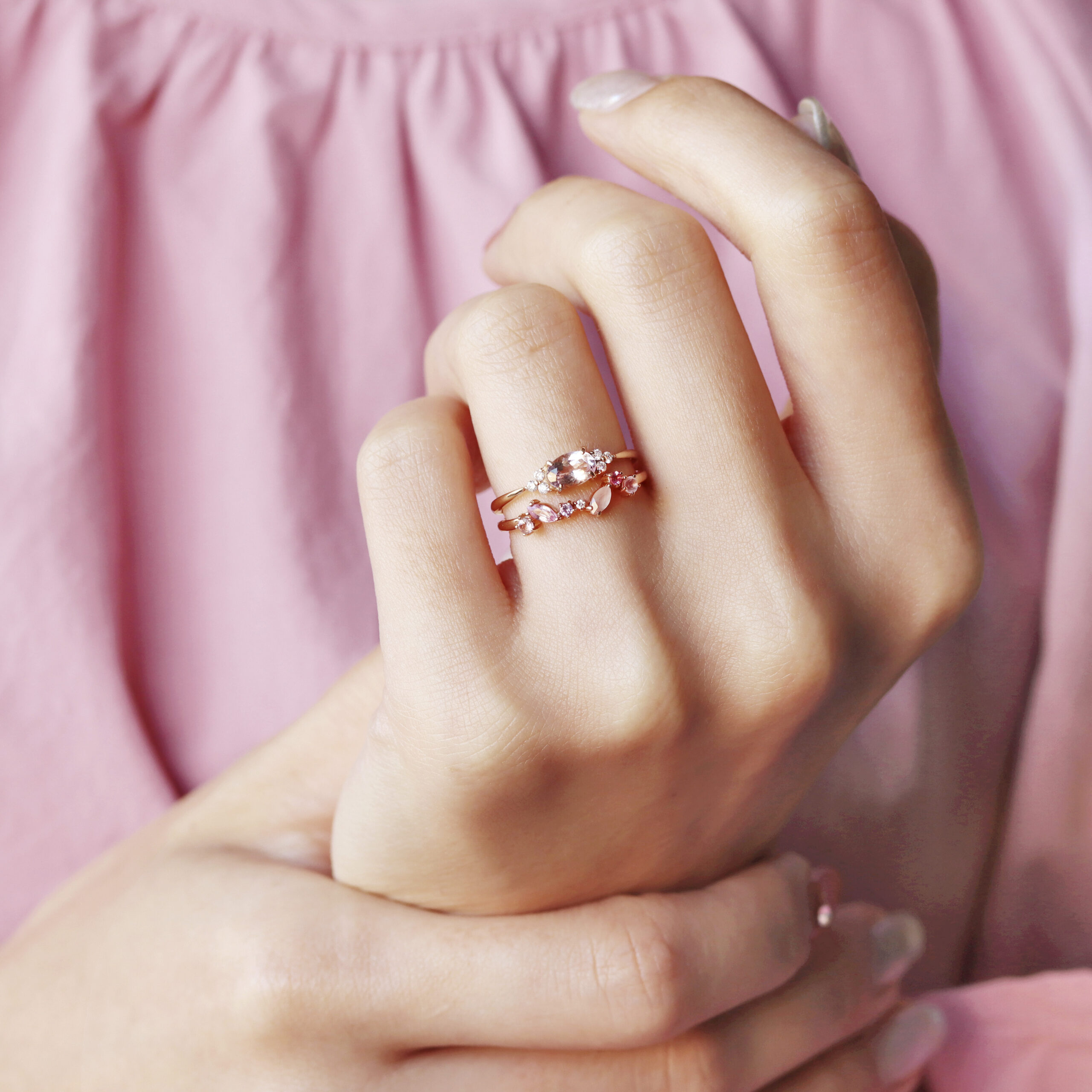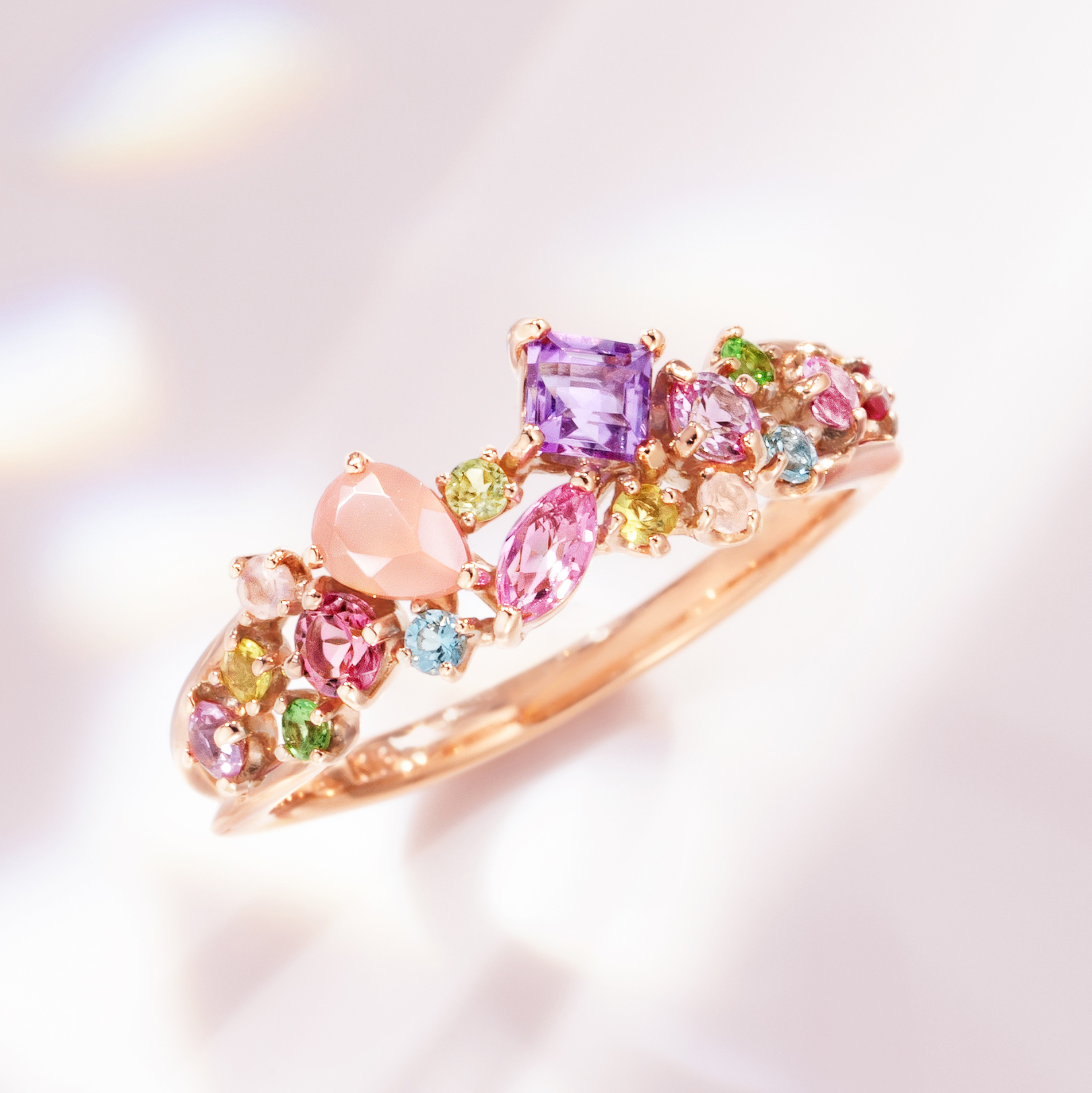 ピンクやブルーなど、自然が生み出す色彩のグラデーションが指先や胸元を彩り、身につけるたびに心が高鳴るような輝きを演出。