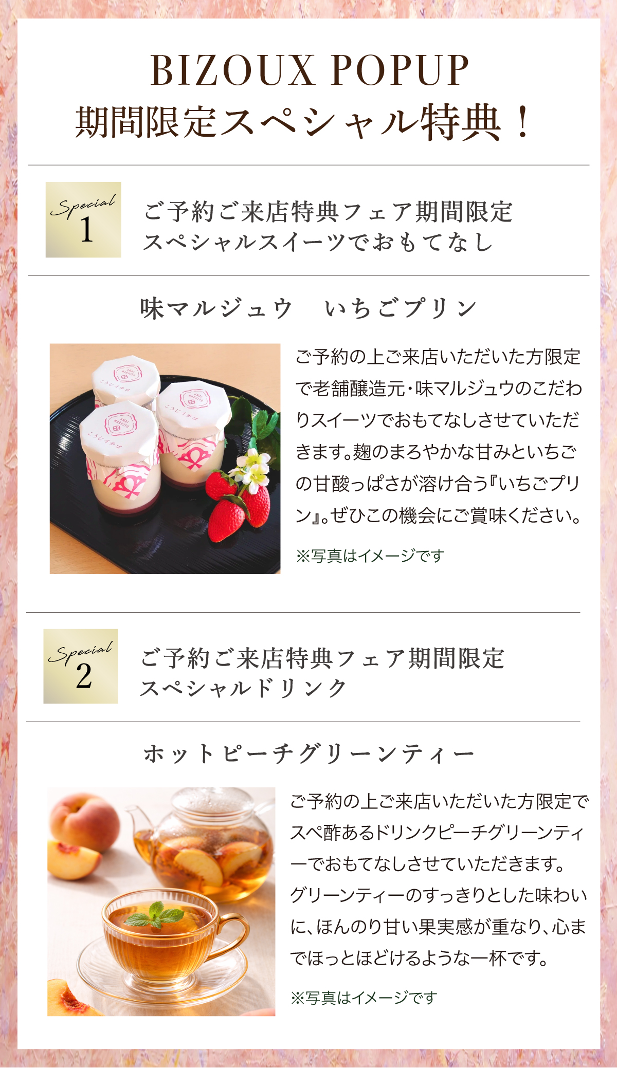 期間限定スイーツとドリンクのおもてなしも!