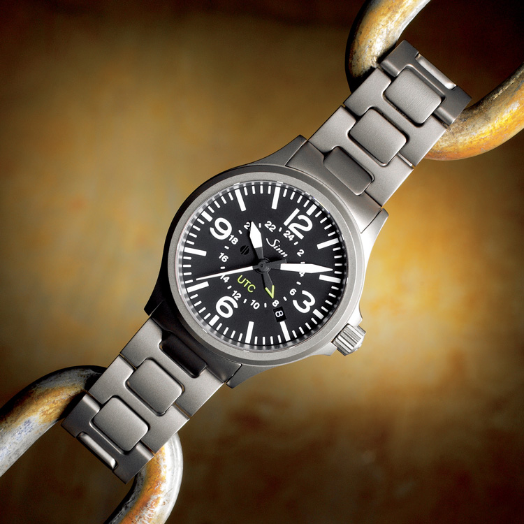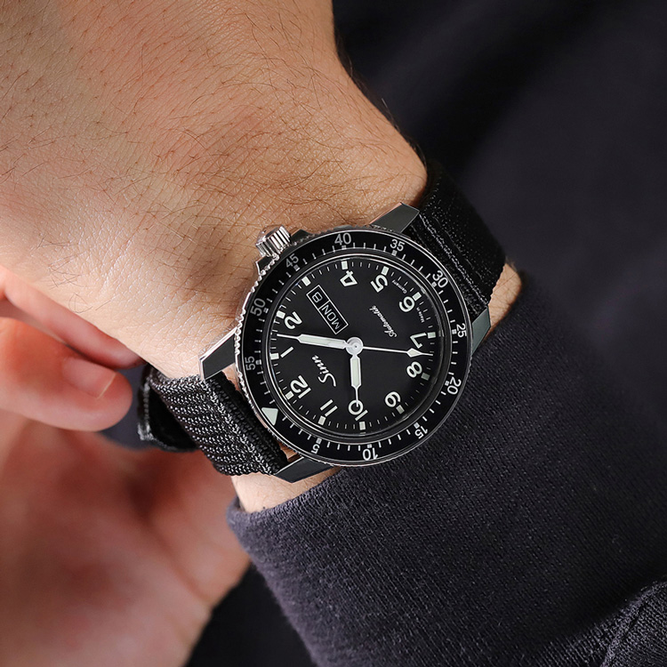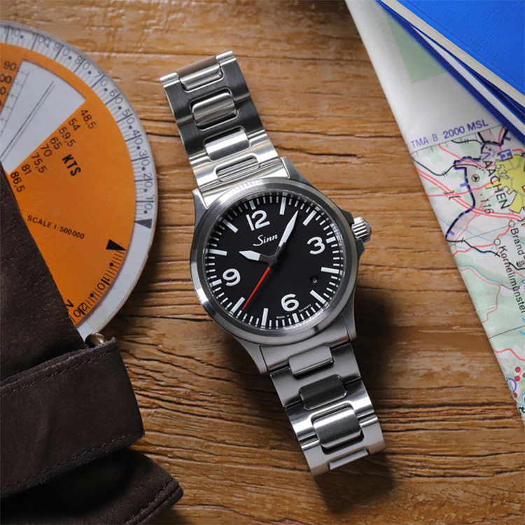回転ベゼルを備えたパイロットウォッチ。視認性・操作性・デザイン性のバランスが非常に高く、Sinnらしさを存分に楽しめるモデルです。