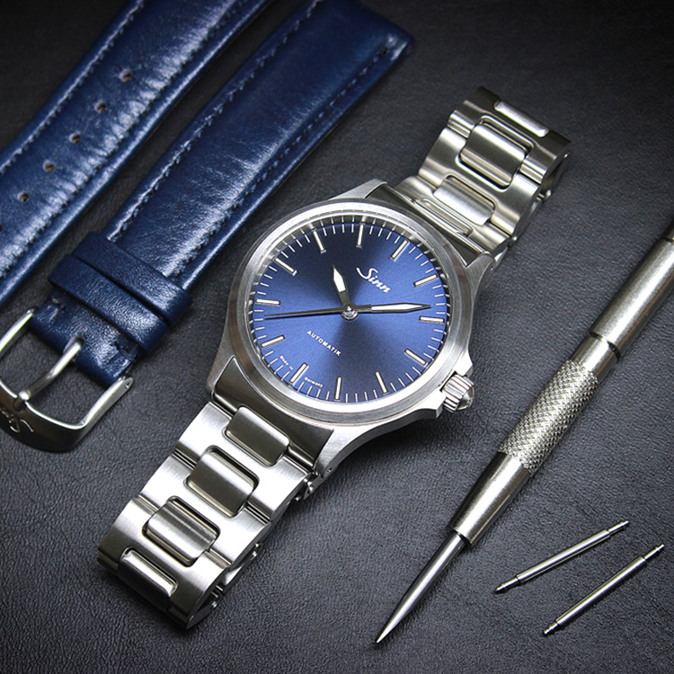 深みのあるブルーダイヤルが印象的な人気モデル。シンプルな3針構成で、ビジネスシーンにも最適。初めてのSinnとしても間違いのない1本です。